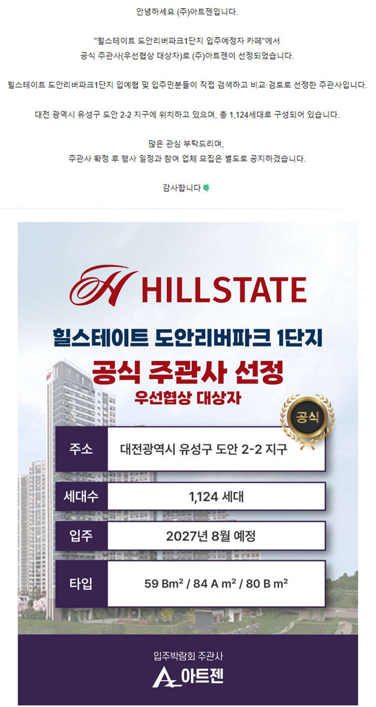 힐스테이트 도안리버파크 1단지 공식 주관사(우선협상대상자) 선정