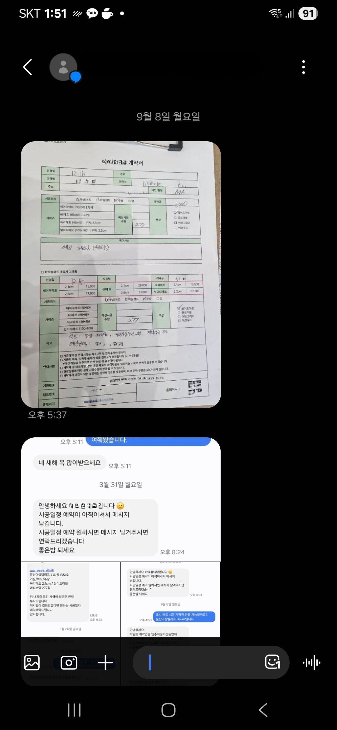 입주민께서 시공전 층간소음매트를 취소하고 싶어 업체와 연락하다가